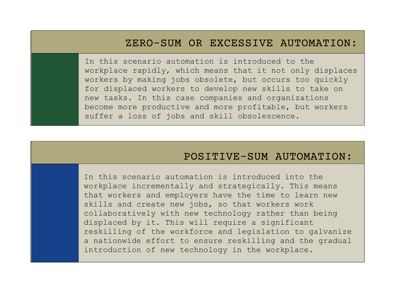 How will automation be integrated into the workplace? AI and robotic systems will be introduced into the workplace in a number of different scenarios: