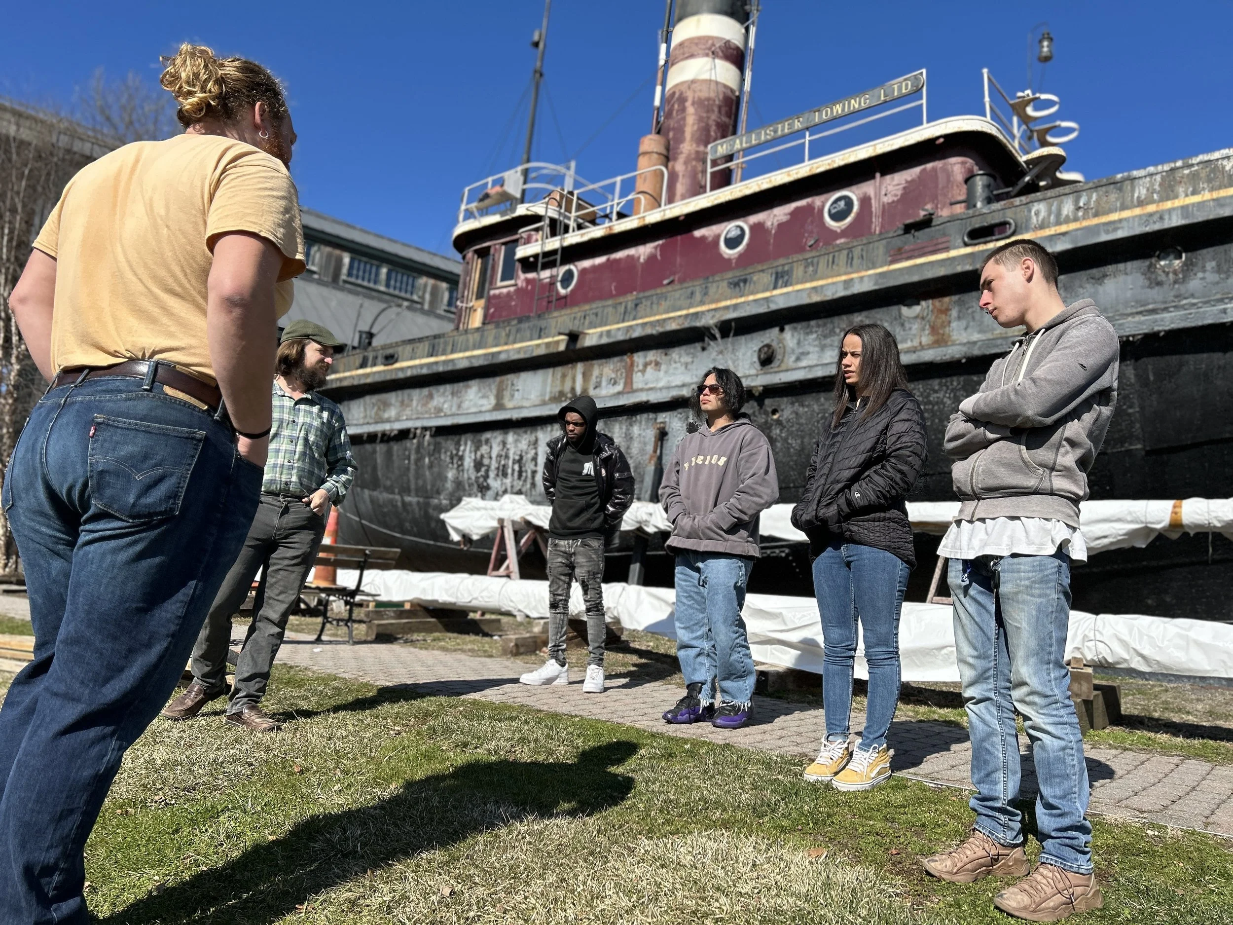 Fellows learning about Hudson River Sloop Clearwater and enjoying some sunshine at HRMM